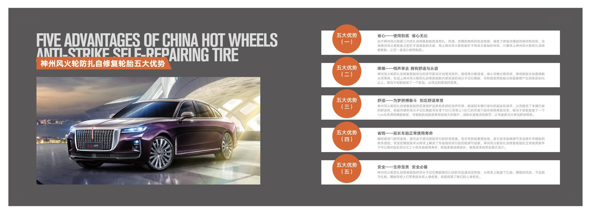 神州風(fēng)火輪智能防扎自修復(fù)輪胎介紹 隨著人們生活水平的不斷提高,汽車已經(jīng)進(jìn)入尋常百姓家庭成為各個(gè)家庭生活當(dāng)中必不可少的代步工具。在大家享受著汽車帶給我們出行便利的同時(shí),也往往因?yàn)槲覀儗?duì)一些部件的忽視導(dǎo)致一些煩惱和意外的發(fā)生。輪胎作為汽車使用過程中不可或缺的重要組成部分,不僅承載著汽車的全部重量,同時(shí)也是駕駛舒適性和行駛安全性的基礎(chǔ)保障。輪胎安全是汽車行駛過程中的重中之重,行業(yè)中流傳著這樣一句話高速爆胎≈生命報(bào)廢,所以說高速爆胎是危害駕乘安全的最大殺手。但大多數(shù)人對(duì)于輪胎的認(rèn)知度卻知之甚少,從而使扎胎爆胎以及由此引發(fā)的意外不斷的在我們身邊上演。據(jù)權(quán)威部門統(tǒng)計(jì)顯示,我國每年在高速公路上發(fā)生的交通事故多達(dá)30多萬起。在這30多萬起的交通事故中,其中76%以上與輪胎高速爆胎有關(guān),也就是說100起交通事故中就有76起和輪胎有關(guān)系,所以說輪胎安全不容小覷,輪胎安全升級(jí)勢在必行。